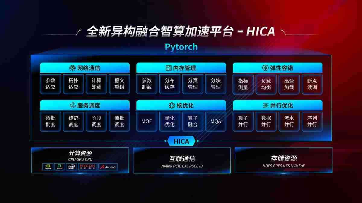 通过自研的服务层、、、、中间适配层、、以及调度编排算法,,,,采用数据并行、、模型并行等多种并行方式,,把并行计算任务进行有效的分解,,,,使其分别由相应的软件栈和算力资源来承接。。当GPU资源变化,,,,HICA可以实时动态调度计算子任务并调整模型拓扑和架构,,,以充分聚合各种算力资源。。。。