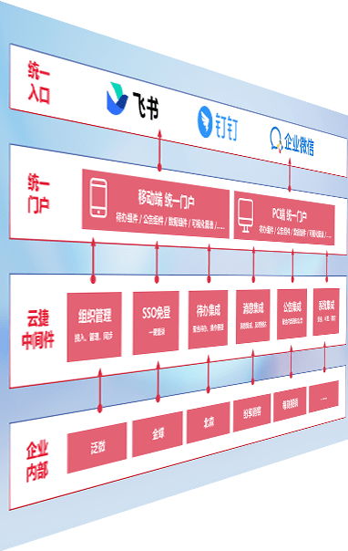 对协作平台提供支持服务,,,支持企业应用与协作平台对接,,,包含组织同步、、消息集成、、、、待办集成等。。。支持目前主流的协作平台:钉钉、、、企微和飞书。。。